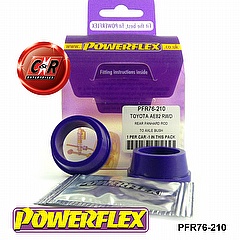 Powerflex Bushes are made from a technologically advanced polyurethane plastic compound impervious to petrol and vehicle oil, which doesn't age or perish and has a longer working life - up to 3-4 times that of conventional rubber bushes. In addition this compound overcomes the common problem associated with harder bushes which is increased noise. By correct engineering the polyurethane compound bushes can be made 25-30% stiffer than rubber bushes, but with exactly the same noise absorption properties. Unlike old technology Poly bushes any increase in vibration / harshness felt through the vehicle is normally undetectable.